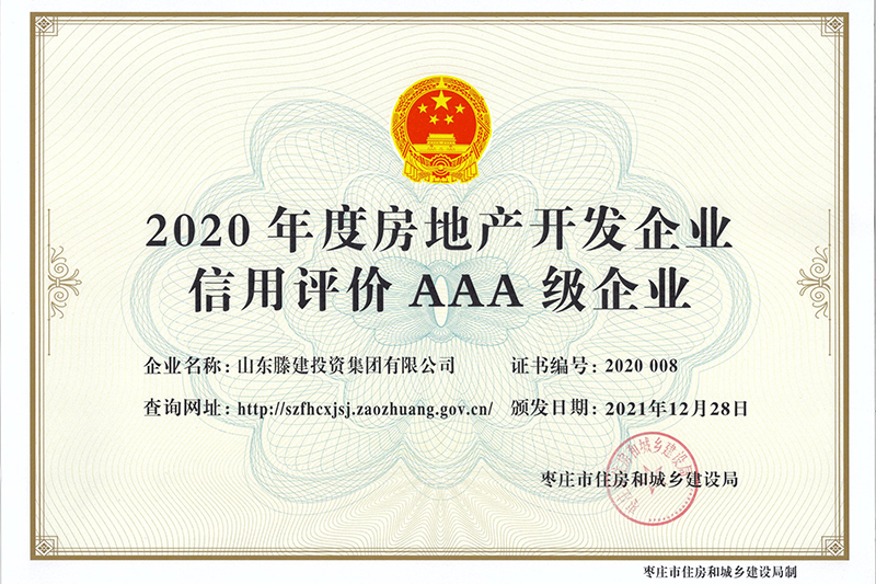 近期,枣庄市住房和城乡建设局发布了2020年度全市房地产开发企业信用等级评定结果。必一体育(中国)官方在线有限公司凭借在企业客观信用能力、经营信用情况、社会信用等方面出色的综合实力,荣获2020年AAA级房地产开发企业最高信用等级。房地产开发企业信用评定是枣庄市住房和城乡建设局依据《枣庄市房地产开发企业信用评价实施细则