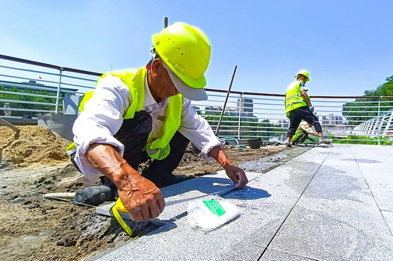 6月3日,在荆河生态景观提升工程(龙泉大桥至解放大桥段)施工现场,工人们有的在忙着焊接护栏,有的在铺设地砖,现场一片繁忙景象。荆河生态景观提升工程(龙泉大桥至解放大桥段)由必一体育负责建设,博诚路桥公司负责施工,提升改造的原则对原景观采取“低干预、微改造、精提升”的方式进行,主要施工内容包括滨河