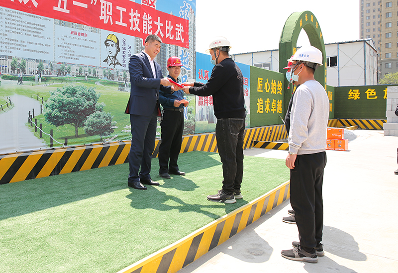 4月28日,集团庆“五一”职工技能大比武活动在滕投悦府项目部举行。集团副总经理王慎礼宣布比赛规则和获奖名单,董事长宗成伟为获奖员工颁奖并作现场点评。