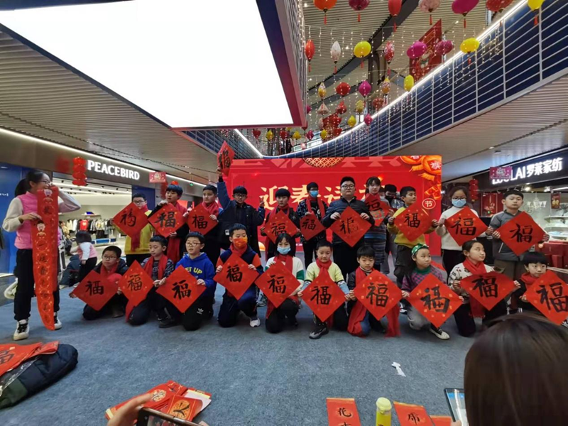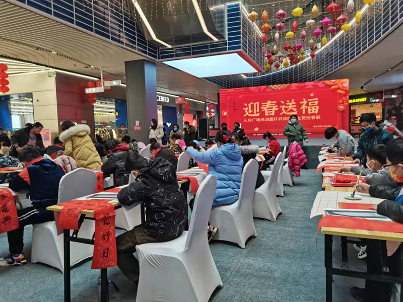 虎年将至,为迎接新年到来,滕投·人和广场举办新春送春联活动,邀请了近百名热爱书法的小朋友现场书写春联,免费赠送商场顾客。